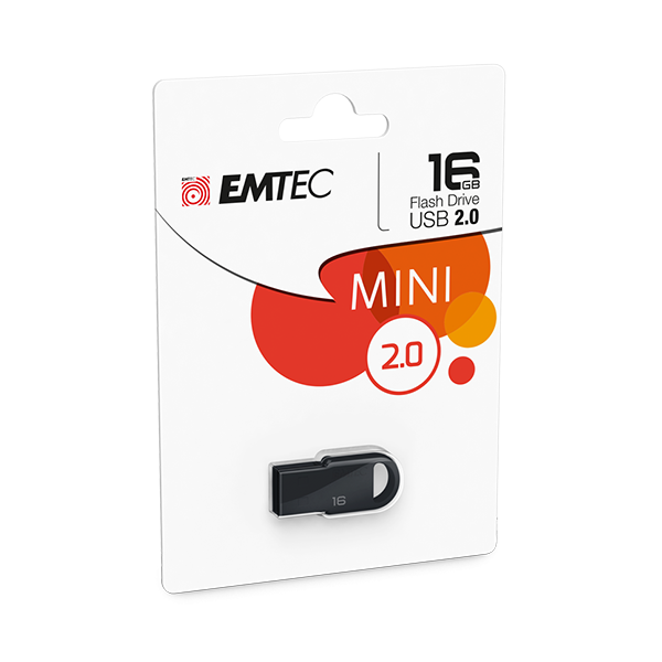 16GB EMTEC USB 2.0 Flash Drive. Model D250 Mini, Ngjyrë e Zezë , Plastik