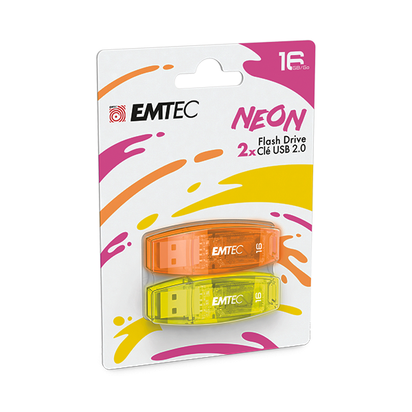 16GB EMTEC USB 2.0 Flash Drive. Model C410, Pako me 2 copë NEON/FLUO