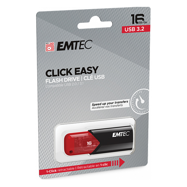 16GB EMTEC USB 3.2 Flash Drive. Model B110 Click Fast me ngjyra kuqezi.