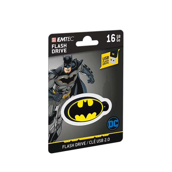 16GB EMTEC USB 2.0 FLASH DRIVE me stemën e DC Comics Collector BATMAN. Produkt ekskluziv i liçensuar 3D, prodhuar me gomë silikoni të cilësisë së lartë. Ka sistem mbajtje për të mos lejuar humbjen e trupit.