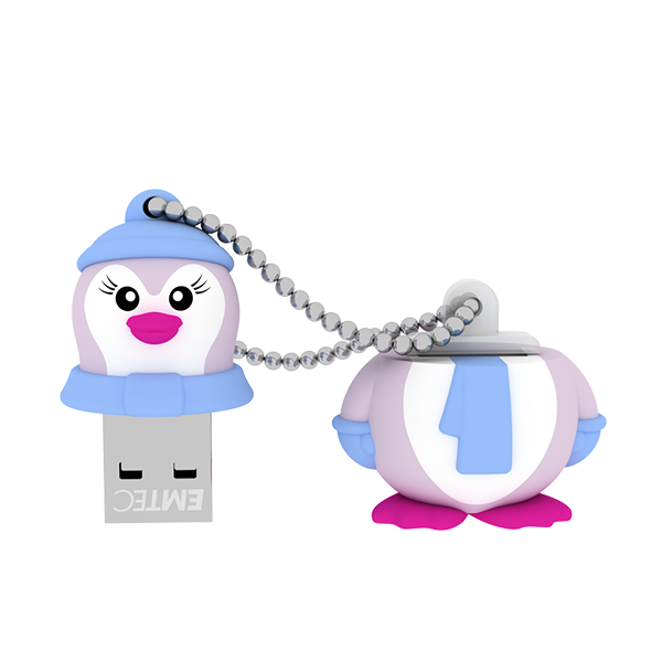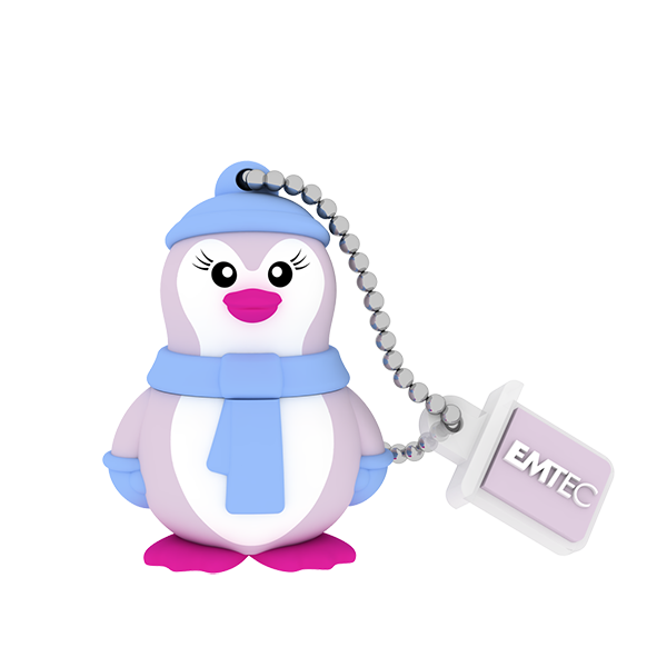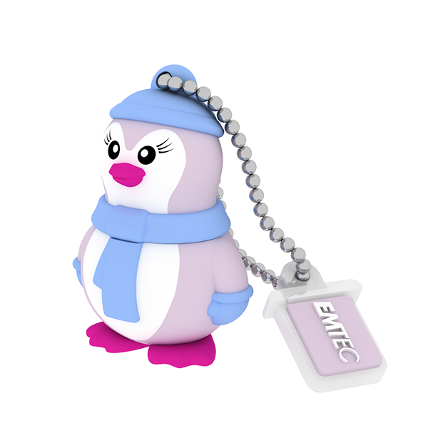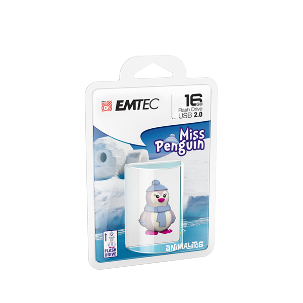 16GB EMTEC USB 2.0 FLASH DRIVE LADY PENGUIN të Animalitos Family, e njohur si e sofistikuar dhe elegante. Model M336, produkt ekskluziv 3D, prodhuar me gomë të cilësisë së lartë. Ka sistem mbajtje për të mos lejuar humbjen e trupit.