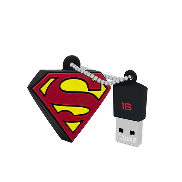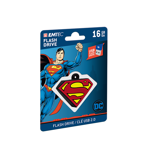 16GB EMTEC USB 2.0 FLASH DRIVE me stemën e DC Comics Collector SUPERMAN. Produkt ekskluziv i liçensuar 3D, prodhuar me gomë silikoni të cilësisë së lartë. Ka sistem mbajtje për të mos lejuar humbjen e trupit.