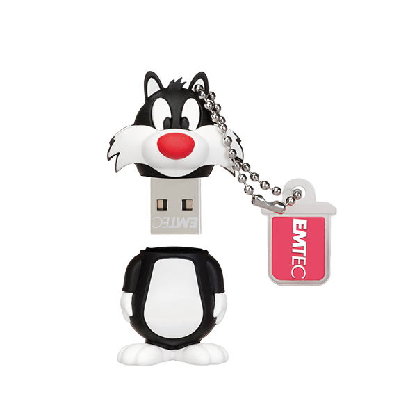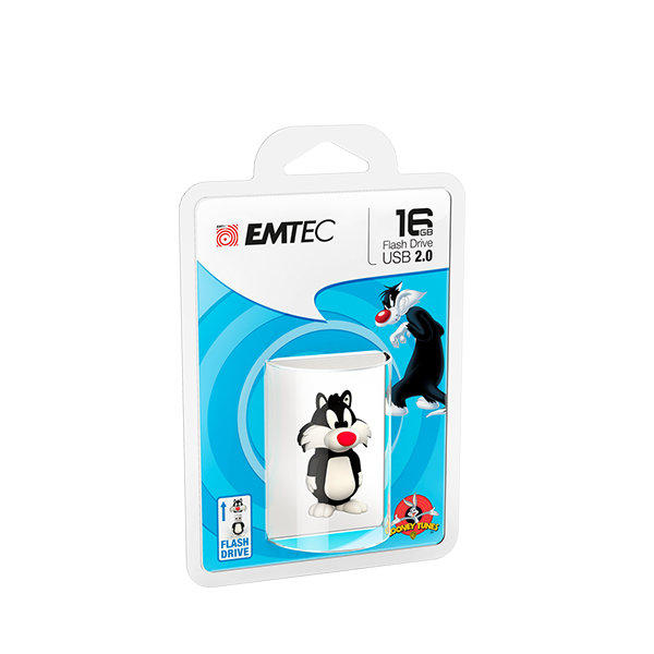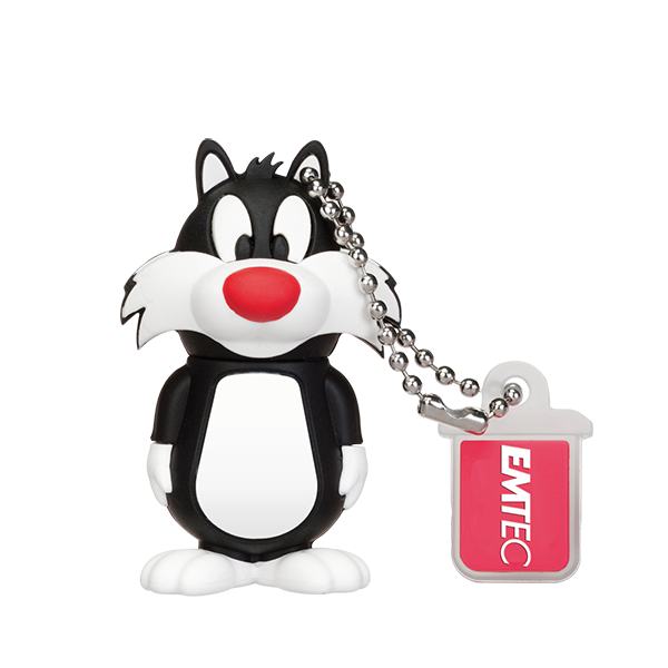 16GB EMTEC USB 2.0 FLASH DRIVE SYLVESTRE të Looney Tunes. Model L101, produkt ekskluziv 3D, prodhuar me gomë të cilësisë së lartë. Ka sistem mbajtje për të mos lejuar humbjen e trupit.