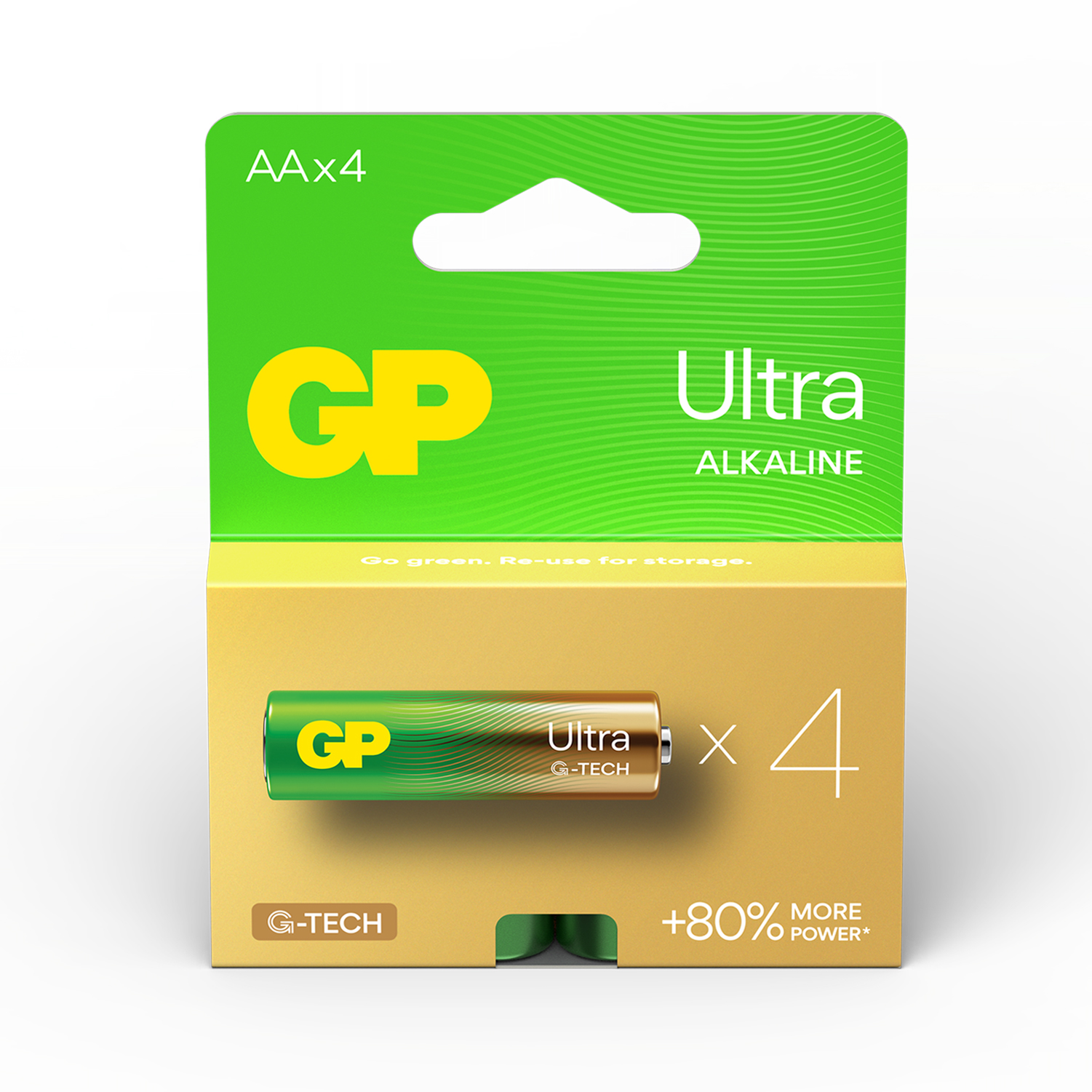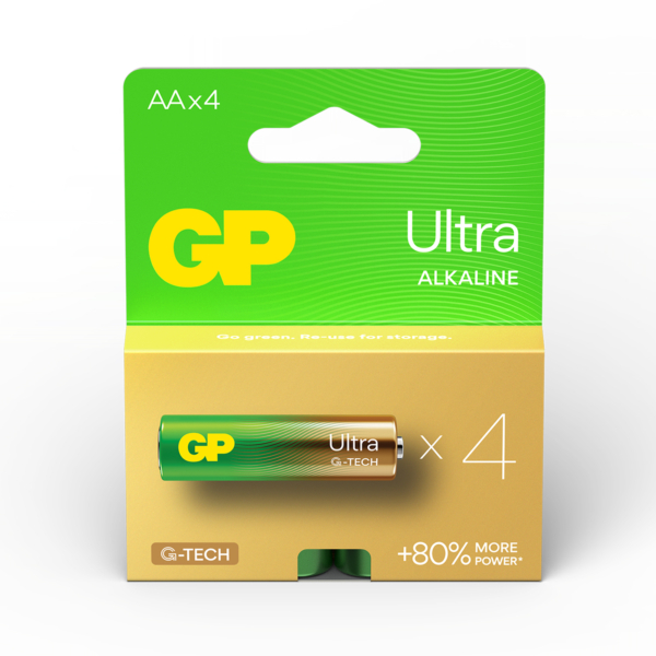 Bateri GP ULTRA ALKALINE AA / LR06 / 15A, 1.5V. Supercilësore me teknologjinë G-Tech. Blister me 4 copë