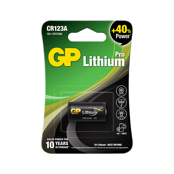 Bateri GP LITHIUM CR123A, 3V, Supercilësi: Nivel PROFESIONAL me +40% energji. Blister me 1 copë.