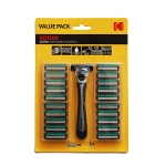 Brisqe Rroje me 3 tehe prej çeliku suedez, me aloe vera, kokë të lëvizshme dhe dorezë që nuk rrëshket. Ka raport të shkëlqyer cilësi/çmim. Pako ka 21 koka që mund të ndërohen.