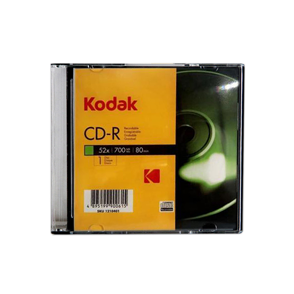 Disk bosh i regjistrueshëm vetëm një herë CD-R KODAK 52X, 700MB, 80min në kuti slim (5mm) 1 Copë.