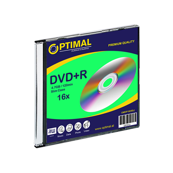 Disk bosh i regjistrueshëm vetëm një herë DVD+R OPTIMAL 16X, 4.7GB, 120min në kuti slim (5mm) 1 Copë.