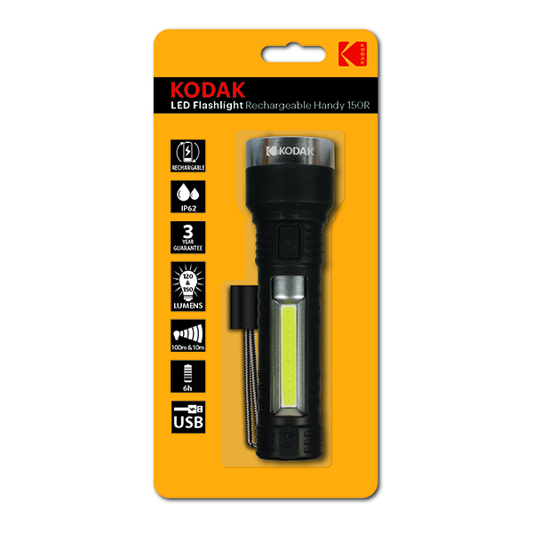 Elektriku i dorës H150 ka të inkorporuar bateri të karikueshme Li-ion 1200 mAh dhe karikohet me fish USB. Ka dy mënyra ndriçimi: Njërën me llampë COB 3W / 120 lumen dhe tjetrën 3W LED / 150 lumen. Distanca e hedhjes së dritës: 100m. Kur është plotësisht i karikuar (koha e karikimit të plotë: 3.5 orë) punon për 4 orë. Trupi i tij është i mbuluar me PC dhe TPR. Shkalla e mbrojtjes nga agjentët atmosferikë: IP62. Prodhuesi ofron 3 vjet garanci. Është i paketuar në blister.