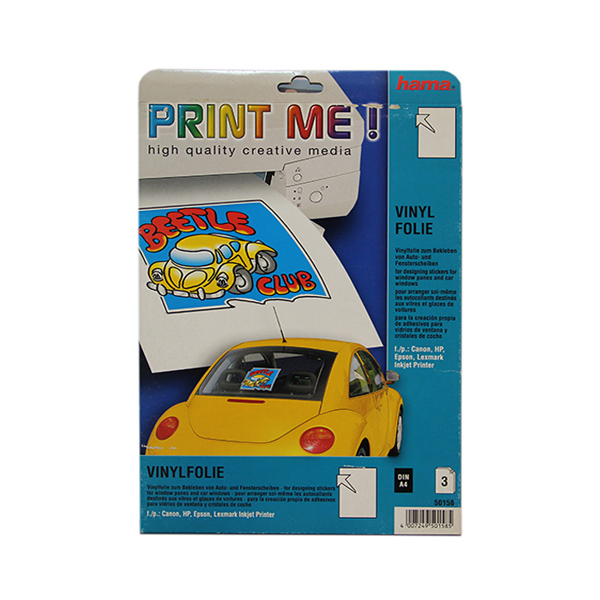 HAMA Vinil Film transparent Inkjet format A4 (210 x 297mm) për printime stikerash që mund të vendosen në xhamat e makinës, vitrina etj. Pako me 3 copë.