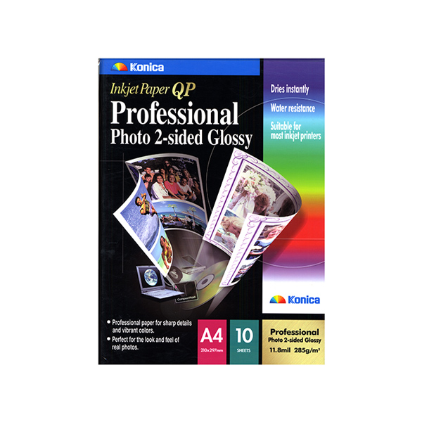 KONICA Inkjet Paper Professional Photo 2-sided Glossy, 285gsm, A4, rezistente ndaj ujit, pako me 10 copë