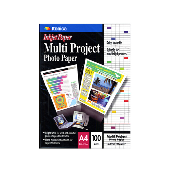 KONICA Multi Project Photo Inkjet Paper, 109gsms, A4, pako me 100 copë