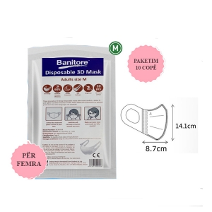 Maska me dizain ergonomik 3D, CE të certifikuara sipas standarteve të BE, TYPE II, me koeficient mbrojtje BFE > 98%. Masa L me përmasa: 160mm x 99mm.